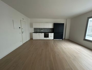 Appartamento di 60mq composto di ampio soggiorno con cucina a vista arredata, camera matrimoniale, bagno finestrato, ripostiglio ed un disimpegno, riscaldamento centralizzato (caldo/freddo) e acqua calda inclusa nelle spese condominiali (€250/mese).