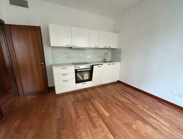 Appartamento di 75mq composto di ampio soggiorno, cucina arredata, camera matrimoniale, bagno, riscaldamento centralizzato (caldo/freddo) e acqua calda inclusa nelle spese condominiali (€200/mese). La soluzione viene consegnata parzialmente arredata come in foto. Si cercano persone referenziate. Libero da subito.