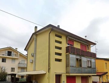 Appartamento al piano primo, composto da: ingresso, cucina, soggiorno-pranzo, due camere, un bagno, un disimpegno, un poggiolo (veranda) e due ripostigli al piano terra, con autorimessa e scoperto 12 mq in uso esclusivo.