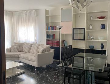 Con una superfice di 130 mq si trova al primo piano di un condominio curato ed è composto da ingresso, un ampio soggiorno che garantisce luminosità e spazio ed è completamente arredato con ampio divano letto, TV, libreria e un moderno tavolo da pranzo con sedie.