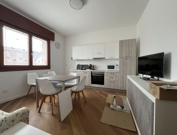 Appartamento completamente ristrutturato a nuovo, situato in zona tranquilla e ben servita. L’immobile è composto da luminoso soggiorno con cucina, due camere da letto (una matrimoniale e una singola)e due bagni finestrati di cui uno con doccia.