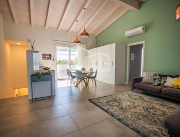 La zona giorno si apre su un grande open space con cucina a vista, caratterizzato da una splendida luminosità naturale e dall’accesso diretto a un terrazzo di circa 40 mq, ideale per pranzi all’aperto e momenti di relax.