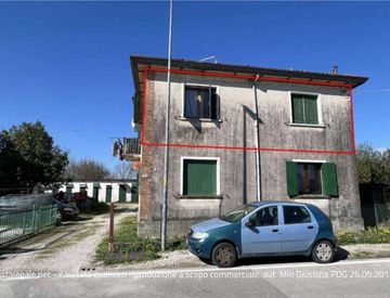 unità abitativa con cantina e orto. l'appartamento ha una superficie commerciale di circa 90 mq, si trova al piano primo di un fabbricato di quattro unità abitative, posizionato a nord-est, con affaccio sul fronte strada. composto da: cucina, soggiorno, due camere da letto e il vano servizi igienici, balcone. vi sono problemi di umidità come da perizia. distaccata dal fabbricato e posizionata a sud-ovest, si trova la cantina di circa 4,43 mq. vi è...
