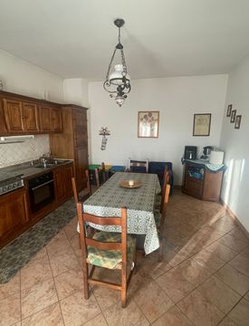 L'immobile è composto da una scala d'ingresso esterna che giunge ad un lungo terrazzo completamente esposto a sud che garantisce moltissima luminosità all'interno dell'appartamento. L'ingresso ci porta all' ampio soggiorno, disimpegno, cucina separata, bagno con lavatrice, altro disimpegno con armadio a muro, cameretta e camera matrimoniale.
