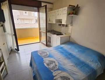 Siamo a proporre in zona centralissima appartamento monolocale composto da un'unica stanza che funge da soggiorno e camera da letto, bagno finestrato con box doccia e ampio terrazzo, completa la soluzione posto auto riservato.