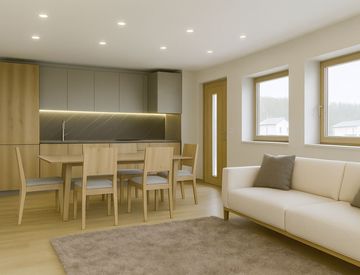 RIFINITURE nuove e tipiche del Cadore, con serramenti in legno con vetrocamera, oscuri in le legno, pavimenti in doghe di legno (ad eccezione che nei bagni dove saranno in gres)