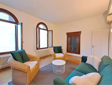 Appartamento situato al primo piano di un edificio storico collocato nel cuore pulsante del centro cittadino, finemente ristrutturato nel rispetto delle sue caratteristiche architettoniche peculiari.