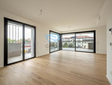 L'immobile sito al piano primo è composto da: ampia zona giorno che si caratterizza per la presenza di grandi vetrate esposte a sud, che garantiscono un'ottima luminosità e affaccio su loggia e terrazza generosa di mq. 20, accedendo alla zona notte trovano spazio 3 camere, 2 bagni, lavanderia e spazioso armadio a muro contenitivo nel corridoio notte.