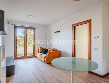 L’ingresso conduce a una luminosa zona living con cucina a vista completamente arredata: un ambiente moderno e funzionale, valorizzato dal riscaldamento a pavimento e dal sistema di raffrescamento con split, pensato per garantire comfort in ogni stagione.