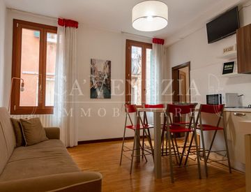 Una volta giunti al caratteristico campiello veneziano, ci troveremo di fronte a un palazzo di poche unità, nel quale è collocata questa preziosa proprietà. Salendo le comode e spaziose scale, raggiungeremo l'unità al primo piano, che si presenta in condizioni impeccabili, essendo stata sottoposta recentemente a un'attenta ristrutturazione.