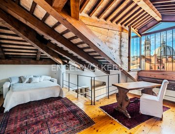 Questo immobile ci ha davvero colpito per come riesce a coniugare la storia e la tradizione veneziana, visibile nelle capriate, nel pavimento, nella vista iconica, con un comfort contemporaneo e una distribuzione degli spazi molto funzionale.