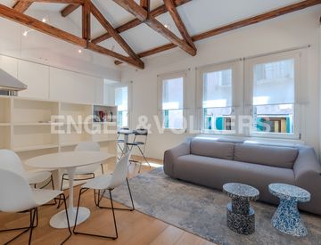 A pochi minuti a piedi dal famoso Ponte di Rialto, ci allontaniamo dalla vivace calle piena di negozi e servizi e andiamo in un angolo più tranquillo della città. Salendo al terzo piano, arriviamo all’appartamento — uno spazio luminoso e accogliente che ci fa subito sentire a casa. Appena entrati, la luce naturale filtra dalle finestre e illumina il soggiorno open space. Un comodo divano ci invita a rilassarci, mentre tocchi di colore sui tavolini...