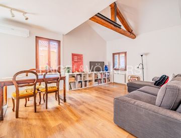 Situato al piano secondo e terzo ultimo piano di una piccola palazzina di sole due unità, l’appartamento si sviluppa su 100 mq sapientemente ristrutturati nel 2018, con uno stile che coniuga eleganza contemporanea e atmosfera veneziana.