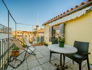 Il vero gioiello della casa è la magnifica terrazza al piano, un luogo raro e prezioso: qui lo sguardo si apre su un giardino e sui tetti veneziani, regalando scorci suggestivi, luce naturale e momenti di quiete assoluta, perfetti per una colazione al sole o un aperitivo al tramonto.