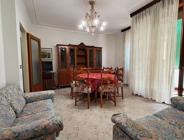 L'abitazione è composta da: ingresso, ampio soggiorno con terrazza, cucina abitabile separata, disimpegno notte con armadio a muro, tre camere da letto matrimoniali, due bagni.