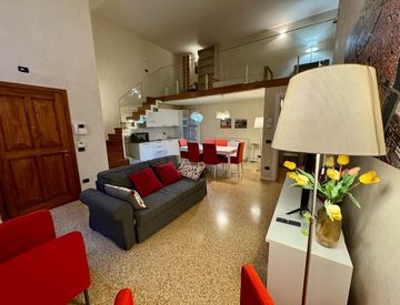 LOFT ARREDATO CON GARAGE In zona centralissima e comoda alla viabilità, proponiamo particolare soluzione con ingresso condominiale per sole due unità abitative, composta da ampio soggiorno con cucina a vista, camera da letto matrimoniale, ripostiglio e bagno al piano dingresso. Al piano superiore, date le importanti altezze interne, sono stati ricavati due ulteriori spazi abitativi, utilizzabili come studio e/o ulteriore zona letti con annesso secondo...