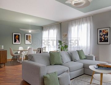 L’appartamento è composto da un'ampia zona living che comprende un salotto, una zona pranzo e una cucina a vista, il tutto impreziosito da un'ampia vetrata che si affaccia su un terrazzo abitabile. La zona notte si compone di un disimpegno, una camera matrimoniale, due bagni di cui uno finestrato con doccia, una camera singola. Possibilità di scelta delle finiture interne.