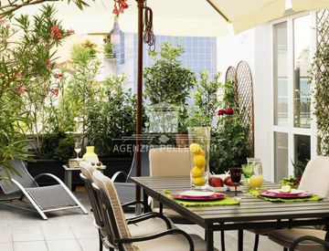 La zona giorno è in openspace con angolo cottura e dispone di un terrazzo abitabile di ben 60 mq: uno spazio ideale per rilassarsi o organizzare cene all’aperto.
