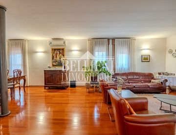 L'appartamento si trova al piano terzo di un palazzo servito da ascensore, si sviluppa su un unico livello ed è così composto: ampio ingresso con luminoso salotto con zona pranzo e studio adiacente, cucina separata abitabile con camino ed accesso alla profonda terrazza con tendone parasole.