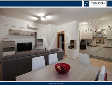 La zona giorno è composta da un soggiorno spazioso organizzato con spazio per la sala da pranzo e da una cucina realizzata su misura, moderna e perfettamente organizzata. Gli arredamenti sono recenti, così come le tapparelle e la porta blindata, appena sostituite.