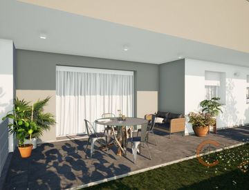 Ingresso su zona giorno di 46 mq, di forma rettangolare con grande vetrata scorrevole sul porticato e sul giardino; antibagno con spazio per lavatrice asciugatrice e bagno completo a servizio della zona giorno. Tre camere da letto (13-13-17mq ca) ed altro bagno finestrato di 7 mq.