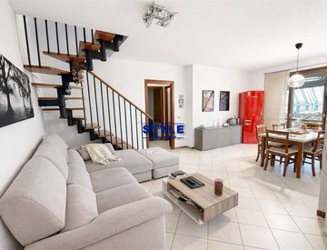 Ingresso, soggiorno - cucina abitabile, terrazzo, camera matrimoniale, camera singola, bagno finestrato e sottotetto con 2 stanze e bagno finestrato.