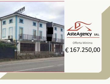 Piena proprietà di complesso immobiliare composto da locali aventi destinazione commerciale (ristorante) al piano terra e interrato (cantina), da una abitazione con terrazza esterna al piano primo e da soffitte al piano secondo, oltre a magazzini fatiscenti in fabbricato distinto, ubicati all'interno dell'area cortilizia di proprietà.