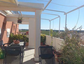 Completa la proprietà una comoda soffitta di circa 15 mq dalla quale si accede ad una grande terrazza panoramica arredata con cucina in muratura e tende da sole.