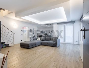 L’ingresso si apre su un soggiorno ampio, luminoso, perfettamente proporzionato. Zona living e zona pranzo dialogano in modo naturale, con una cucina a vista moderna e raffinata che diventa parte integrante dell’architettura dell’ambiente. Le finiture sono ricercate, coerenti, mai casuali: ogni dettaglio è stato scelto con gusto e attenzione.