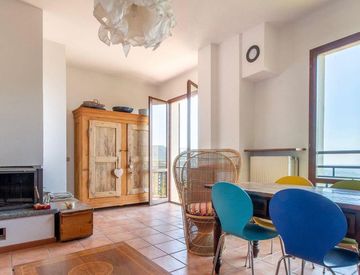 Goditi il panorama mozzafiato dalla terrazza e dal balcone, che offrono una vista incantevole sulla valle circostante. La camera matrimoniale mansardata è un vero angolo di tranquillità, mentre il bagno moderno e ben curato aggiunge un tocco di eleganza.