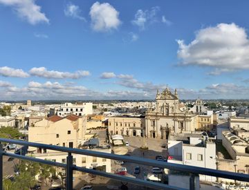 L’appartamento si sviluppa in una zona living open space ampia e raffinata, con cucina a vista e grandi vetrate che creano una perfetta continuità tra interno ed esterno, aprendo lo sguardo su una terrazza di circa 90 mq, panoramica e di grande fascino. Da qui si gode una vista spettacolare sulla Basilica di San Pietro e Paolo, su Galatina e sui dintorni, un panorama esclusivo che valorizza la bellezza e l’identità del territorio.