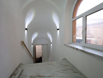 La soluzione è completamente ristrutturata e raggiungibile tramite un'elegante scalinata originale che testimonia il fascino storico della struttura, capace di coniugare modernità e storia.