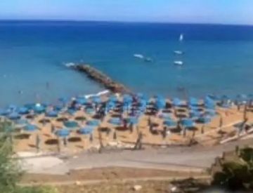 Spiaggia privata con ombrelloni.