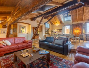 composto da ampio soggiorno molto particolare, di grande fascino caratterizzato dalle bellissime antiche capriate e travi a vista.