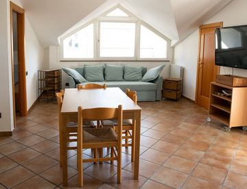 Il vero gioiello di questa proprietà è l'ampio terrazzo, ideale per pranzi e cene all'aperto, dove potrai goderti il sole al tramonto. Il bagno è ben arredato e funzionale, mentre il riscaldamento a pompa di calore garantisce comfort in ogni stagione.