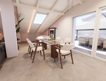 La particolarità di un ambiente mansardato, contemporaneo, accogliente e suggestivo grazie alle eleganti travi a vista; offre la possibilità di sfruttare ogni spazio nel modo più utile possibile. Le finiture eleganti e di pregio rendono questo attico unico nel suo genere.