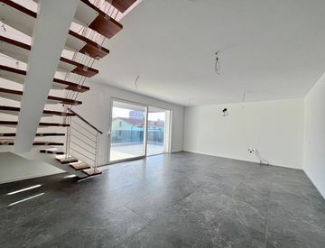 Pordenone zona Ospedale Civile, in posizione tranquilla, attico in condominio di nuova realizzazione. Posizionato al terzo piano con ascensore, è caratterizzato da stupende terrazze di grande metratura ed ottima esposizione. Composto da ingresso sulla zona giorno di 37mq con angolo cottura e terrazza di 27mq, disimpegno notte attrezzabile, due camere matrimoniali di cui una con guardaroba, due bagni, accessibile dal soggiorno con scala a vista soffitta...
