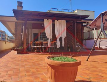 L’appartamento di circa 150 mq commerciali è attualmente composto da ingresso, salone doppio con accesso al terrazzo al piano di circa 140 mq con ulteriore locale coperto e tettoia in legno, disimpegno dal quale si accede alla cucina (adiacente al salone), ai due bagni (entrambi finestrati) e alle 3 camere matrimoniali. Tutte le camere hanno accesso al terrazzo perimetrale.