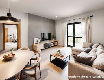 Panoramico attico bilocale di 64 mq interni, composto da ampio soggiorno, cucina abitabile, camera da letto matrimoniale e servizi. L'appartamento è provvisto di un ampio balcone perimetrale al piano e di una terrazza panoramica al piano superiore, con doppio affaccio. L'alloggio è fornito di porta blindata, videocitofono, cronotermostato ambiente ed elettrovalvole e predisposto per l'impianto d'allarme.