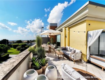Ma il vero gioiello di questa proprietà è il terrazzo panoramico, di 50 mq uno spazio esclusivo dove rilassarsi e godere della vista circostante.