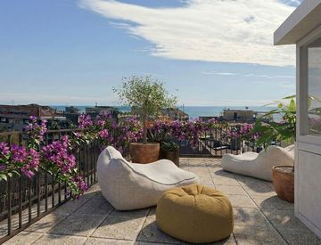 L'ingresso accoglie con un angolo cottura moderno e funzionale, camera da letto matrimoniale e un bagno con box doccia, mentre al piano superiore si trova una seconda camera matrimoniale con accesso diretto a un secondo bagno e alla fantastica terrazza. Gli spazi sono stati completamente ristrutturati, con finiture di alta qualità e aria condizionata per il massimo comfort.