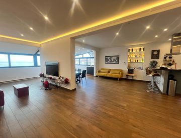 Zona giorno: spaziosa e ben organizzata, con area living luminosa, divano confortevole e zona pranzo. Le ampie vetrate favoriscono la luce naturale durante tutto il giorno e la vista mare a 360° creano un’atmosfera ariosa e rilassante.