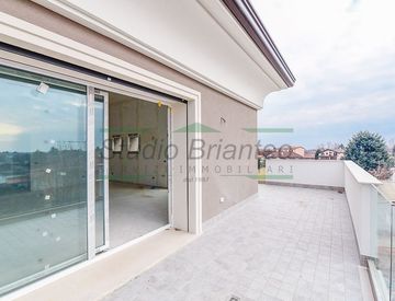 Carate B. za: Alle porte del centro storico, in posizione defilata ma ben servita dai principali servizi cittadini e a pochi minuti dalla SS36, in signorile edificio di nuova costruzione, proponiamo attico vero posto all'ultimo piano con ascensore diretto, caratterizzato da ampia loggia e terrazzi profondi, in classe A4.