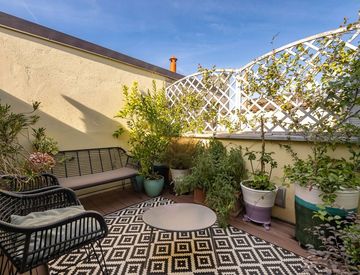 Attico in una tranquilla via nella zona più vivace della città, a pochi passi dal centro e da parco Sempione, con viste sui tetti e sullo skyline con tramonti che incantano.
