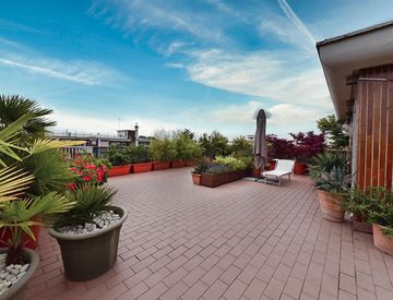 Tramite una scala a chiocciola saliamo al settimo piano dove è presente un locale hobby e la terrazza di circa 100 mq, libera su quattro lati, ideale per trascorrere piacevoli momenti all'aria aperta.