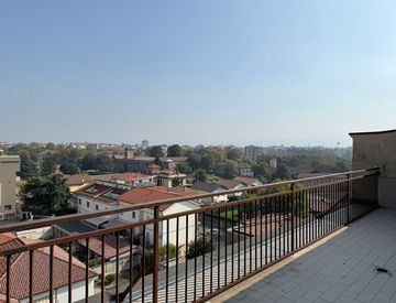 I terrazzi perimetrali regalano una vista spettacolare sulle colline e sui tetti della città, creando un’atmosfera unica, ideale per chi desidera uno spazio esterno per momenti di convivialità o di relax.