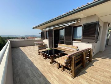 esclusivo attico e superattico circondato da un ampio terrazzo che offre uno splendido panorama con vista mare e città.