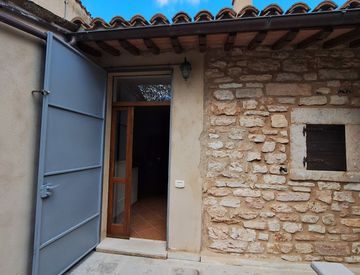 L’immobile, disposto su un unico livello, è composto da soggiorno con angolo cottura, due camere da letto e un bagno. La proprietà include anche una cantina sottostante, una soffitta e un piccolo giardino di circa 44 mq, recintato e posizionato di fronte alla casa.