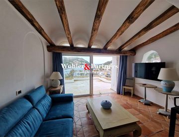 Nella splendida località di Poltu Quatu si propone in locazione dal 16 luglio al 6 settembre prestigioso attico finemente arredato con terrazza con vista sul porto, Maddalena e Corsica, composto da; salone con terrazzo con vista sul porto, Maddalena e montagne della Corsica, cucina, due camere letto e due bagni, completa la proprietà la dotazione di aria condizionata. Possibilità di locazione settimanale, mensile oppure tutto il periodo, richiesta...