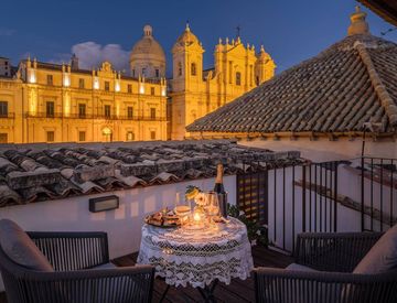 Questa elegante proprietà si trova nel cuore del centro storico di Noto, all'interno di un prestigioso palazzo del 1746, e offre una vista panoramica sulla Basilica di San Nicolò e su Via Nicolaci. Dai suoi balconi si può ammirare lo spettacolo dell'Infiorata di Noto, quando la città, nel mese di maggio, si trasforma in un tappeto floreale colorato e profumato, frutto della creatività degli abitanti locali. Inoltre, la sua posizione privilegiata,...